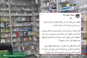 طرح الخبير الاقتصادي مختار الجديد رؤية إصلاحية لمنظومة الأدوية في ليبيا، تقوم على إنشاء نظام شامل لحصر أصحاب الأمراض المزمنة مثل الأورام والفشل الكلوي والسكري، على غرار منظومة “راتبك لحظي”، بهدف ضمان وصول الأدوية إلى مستحقيها مباشرة.