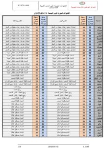 وأكد المركز أن الأجواء ستبقى مستقرة نسبياً دون تغيرات كبيرة، خاصة فيما يتعلق بدرجات الحرارة، مشدداً على أن النشرة الجوية يتم تحديثها يومياً أو عند حدوث أي تغيرات، ولا يُعتد إلا بآخر إصدار رسمي.