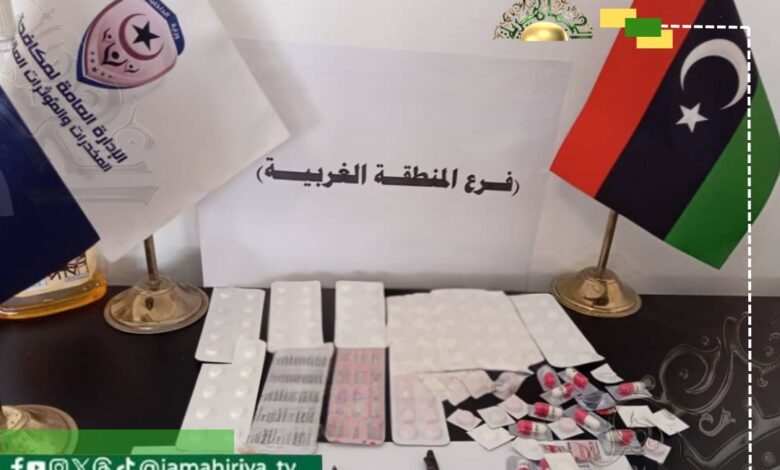 مع تنوع الجريمة وتفاقمها، تمكن مكتب تحريات صرمان التابع لجهاز مكافحة المخدرات – فرع المنطقة الغربية، من ضبط مروج مخدرات بمدينة الزاوية، وهو مواطن ليبي من مواليد 1989، وذلك بعد عملية تحرٍ وجمع معلومات دقيقة. وأُلقي القبض عليه داخل سيارة نوع “قولف”، حيث عُثر بحوزته على 132 قرصًا يُشتبه أنها من أقراص الهلوسة (روج – لاريكا – ترامادول)، إضافة إلى 3 قطع يُشتبه أنها من مخدر الحشيش.