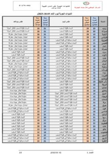درجات الحرارة القصوى: تتراوح مابين (25-30)م، تسجل انخفاض تدريجي من يوم الغد.