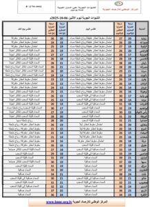-الحرارة: بين (25 – 31)°م، مع انخفاض متوقع يوم الغد.