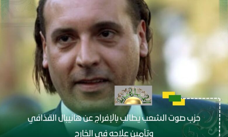 أصدر حزب صوت الشعب بيانًا دعا فيه إلى الإفراج الفوري عن المواطن الليبي هانيبال معمر القذافي المحتجز في لبنان منذ عدة سنوات، مؤكدًا أنه يعاني من حالة صحية حرجة تستوجب نقله للعلاج خارج البلاد.