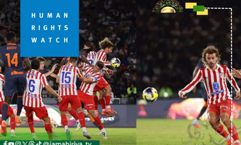 وأوضحت المنظمة أن الحدث، الذي فاز فيه أتلتيكو مدريد بكأس “إعادة الإعمار”، يهدف إلى صرف الأنظار عن سجل الانتهاكات المنسوبة لقوات حفتر، والتي تشمل الاختفاء القسري والتعذيب والقتل خارج نطاق القانون، وفق تقارير أممية.
