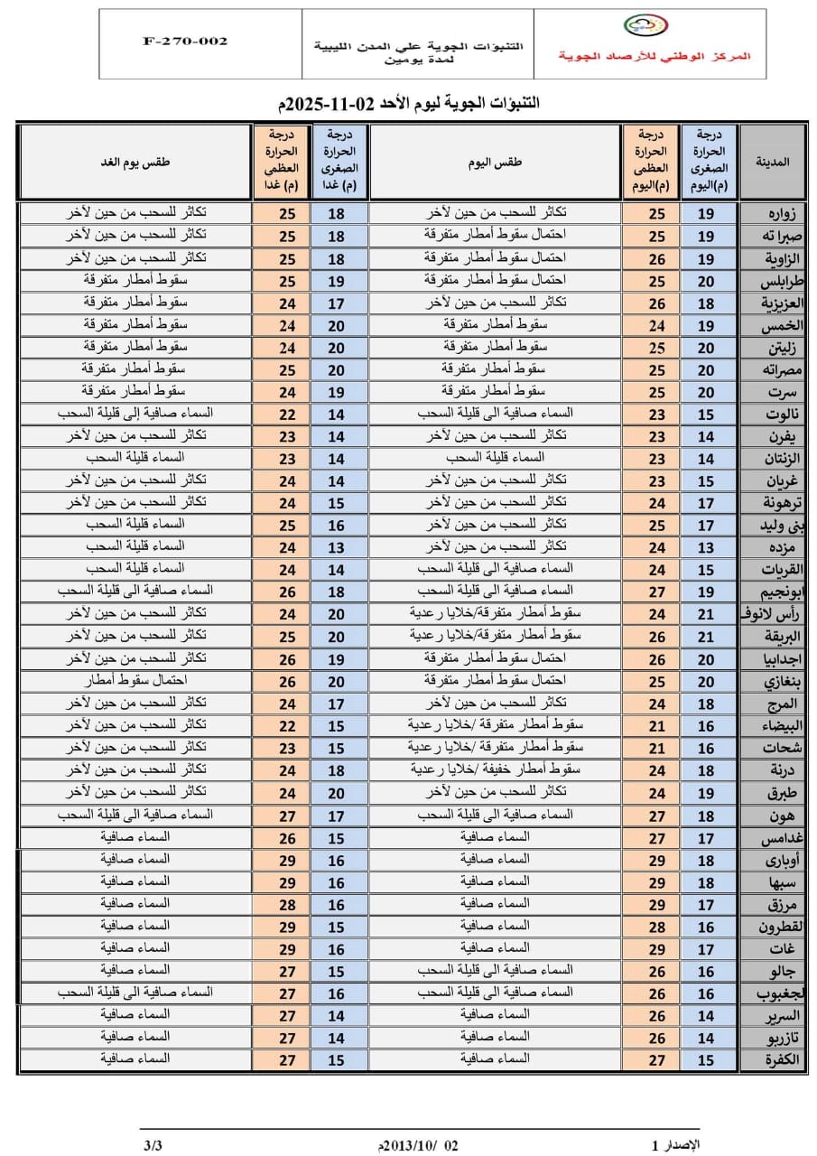 وجاء بيان الأحوال الجوية المتوقعة على ليبيا اليوم كالتالي: