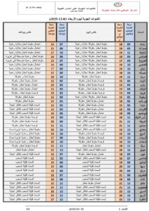 درجات الحرارة القصوى: تتراوح مابين (20-25)م، وتتراجع من يوم الجمعة على أغلب المناطق.