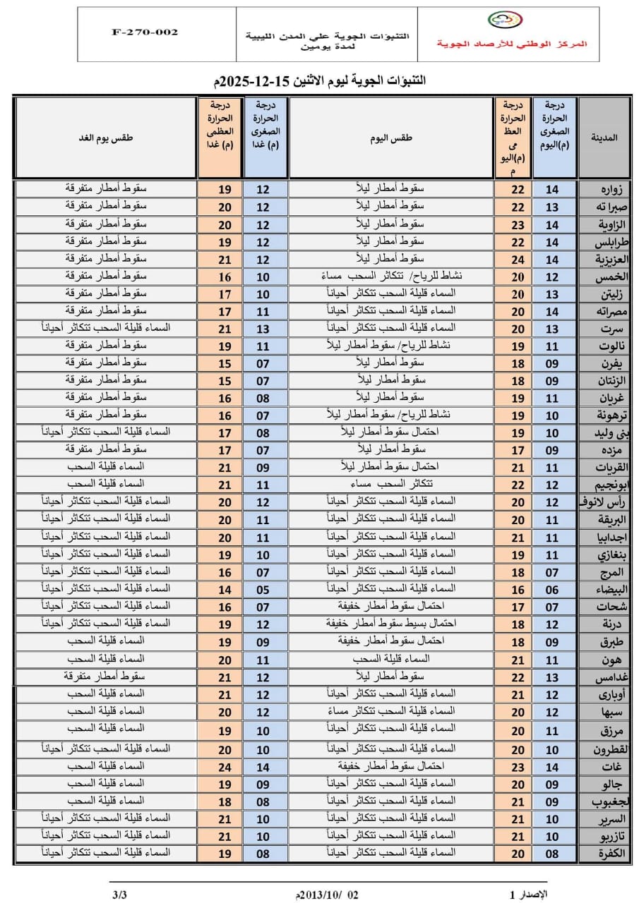 وجاء بيان الأحوال الجوية المتوقعة على ليبيا اليوم كالتالي: