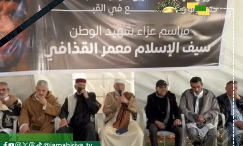 وجاء المشاركون لتقديم التعازي في وفاة الشهيد الصائم سيف الإسلام معمر القذافي، مؤكدين على استمرار المسيرة الوطنية والقيم التي جسدها الشهيد في حياته ومواقفه.