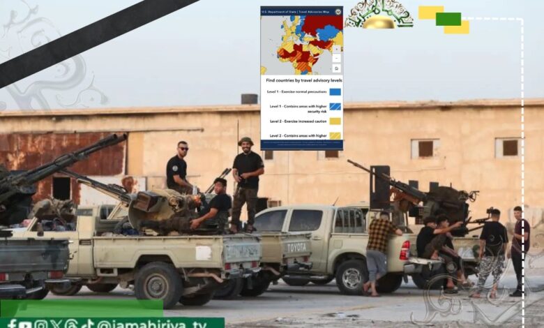 على الخريطة التفاعلية لوزارة الخارجية الأمريكية، لا تُقرأ الأسماء فقط، بل تُفهم الرسائل من ألوانها، وهناك، في شمال أفريقيا، تظهر ليبيا بلون المستوى الرابع ،أعلى درجات التحذير، مرفقة بعبارة واضحة: “لا تسافر”.