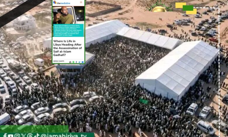 نشرت صحيفة ذا ميديا لاين تقريراً بعنوان: إلى أين تتجه الحياة في ليبيا بعد اغتيال سيف الإسلام القذافي؟، تناولت فيه التداعيات الخطيرة لاختفاء سيف الإسلام من المشهد السياسي الليبي.