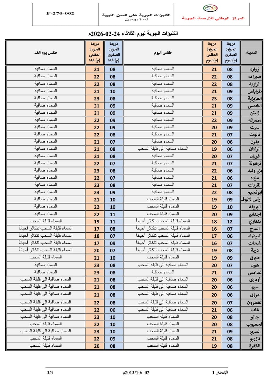 وجاء بيان الأحوال الجوية المتوقعة على ليبيا اليوم كالتالي: