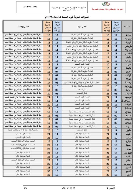 وجاء بيان الأحوال الجوية المتوقعة على ليبيا اليوم كالتالي:-