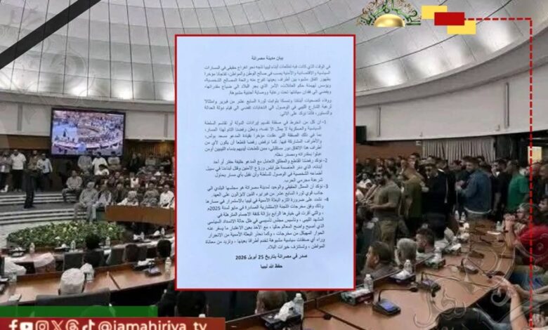 أعلنت مكونات من مدينة مصراتة رفضها لما وصفته بـ الصفقة المشبوهة المرتبطة بالتحركات الأخيرة في الملف الليبي، محذرة من توجهات تؤسس لـ حكم العائلات وتقاسم النفوذ على حساب الدولة.