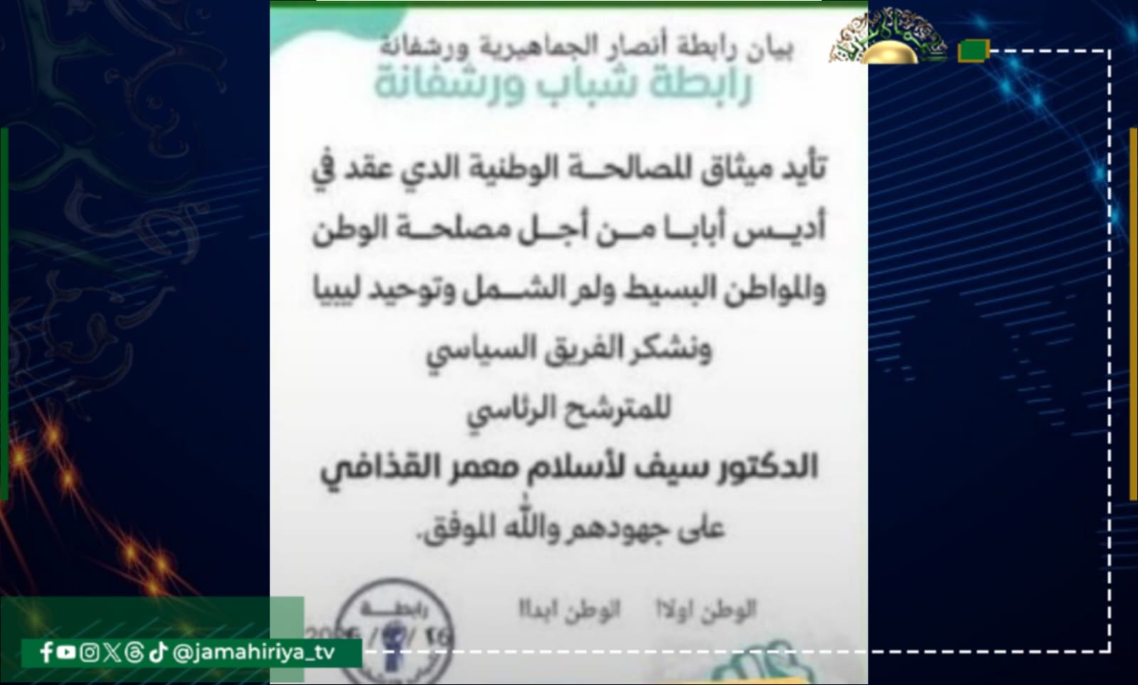 رابطة أنصار الجماهيرية ورشفانة تؤيد ميثاق المصالحة