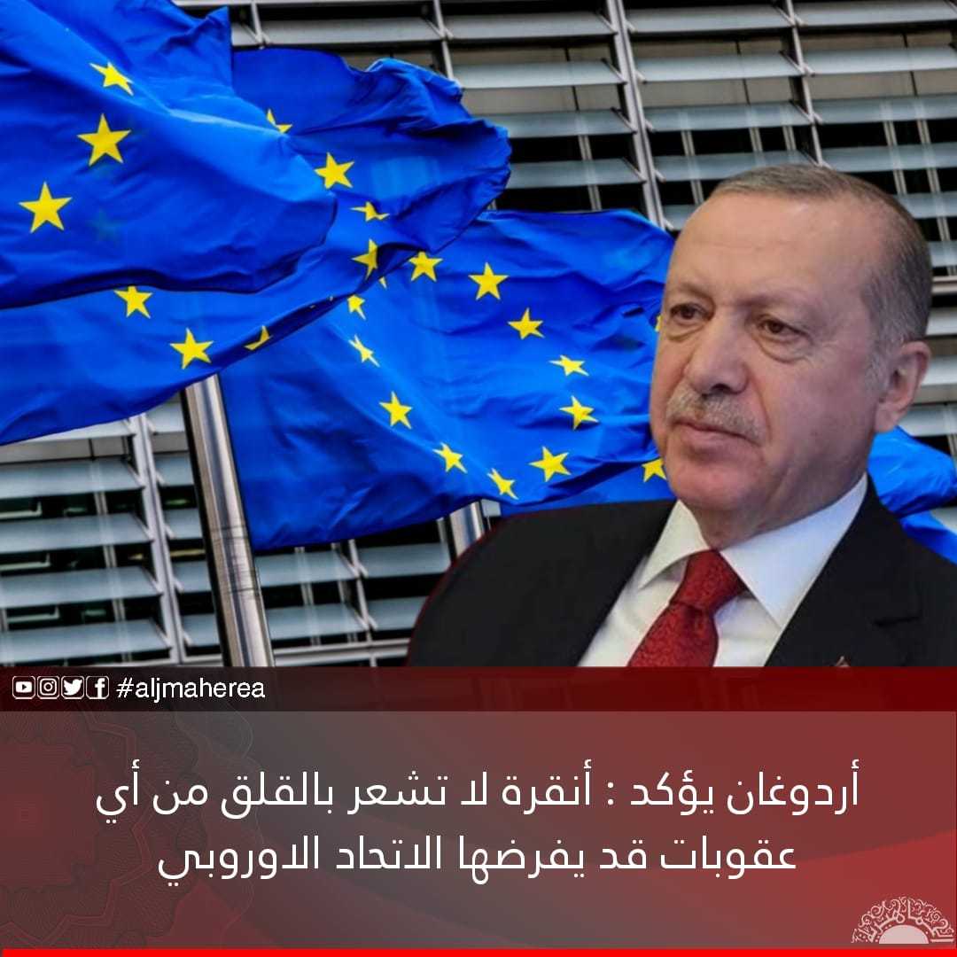 أردوغان يؤكد : أنقرة لا تشعر بالقلق من أي عقوبات قد يفرضها الاتحاد الاوروبي