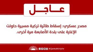 عاجل // مصدر عسكري: إسقاط طائرة تركية مسيرة حاولت الإغارة على بلدة الأصابعة مرة آخرى #قناة_الجماهيرية_العظمى_قناة_كل_الجماهير