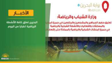 البحرين تعليق كافة الأنشطة الرياضية أعتبارا من اليوم .