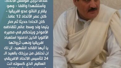 أيها الأفارقة العظام ..استووا رحمكم الله [. 1. ]. … الرحمة والرضوان على ارواح الأباء المؤسسين لمنظمة الوحدة الافريقية ،…