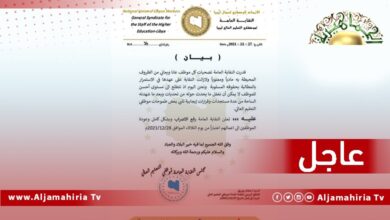 عاجل// النقابة العامة لموظفي التعليم العالي تعلن إنهاء الإضراب وعودة الموظفين لممارسة أعمالهم من اليوم