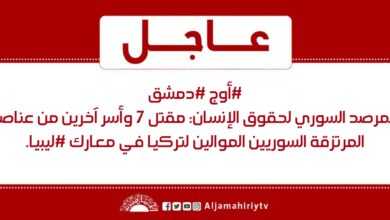 عاجل | #أوج #دمشق المرصد السوري لحقوق الإنسان: مقتل 7 وأسر آخرين من عناصر المرتزقة السوريين الموالين لتركيا في معارك #ليبيا. #قناة_الجماهيرية_العظمى_قناة_كل_الجماهير