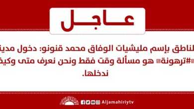عاجل | #أوج #طرابلس الناطق بإسم مليشيات الوفاق محمد قنونو: دخول مدينة #ترهونة هو مسألة وقت فقط ونحن نعرف متى وكيف ندخلها. #قناة_الجماهيرية_العظمى_قناة_كل_الجماهير