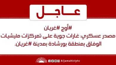 عاجل | #أوج #غريان مصدر عسكري: غارات جوية على تمركزات مليشيات الوفاق بمنطقة بورشادة بمدينة #غريان. #قناة_الجماهيرية_العظمى_قناة_كل_الجماهير