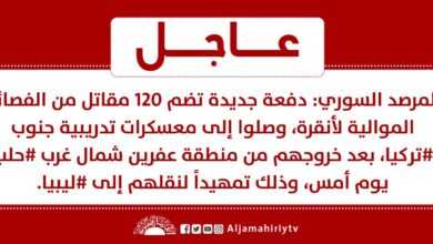 عاجل // المرصد السوري: دفعة جديدة تضم 120 مقاتل من الفصائل الموالية لأنقرة، وصلوا إلى معسكرات تدريبية جنوب #تركيا، بعد خروجهم من منطقة عفرين شمال غرب #حلب يوم أمس، وذلك تمهيداً لنقلهم إلى #ليبيا #قناة_الجماهيرية_العظمى_قناة_كل_الجماهير