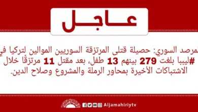 المرصد السوري: حصيلة قتلى المرتزقة السوريين الموالين لتركيا في #ليببا بلغت 279 بينهم 13 طفل، بعد مقتل 11 مرتزقًا خلال الاشتباكات الأخيرة بمحاور الرملة والمشروع وصلاح الدين #قناة_الجماهيرية_العظمى_قناة_كل_الجماهير