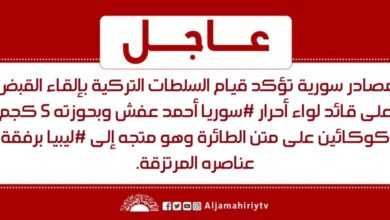 عاجل // مصادر سورية تؤكد قيام السلطات التركية بإلقاء القبض على قائد لواء أحرار #سوريا أحمد عفش وبحوزته 5 كجم كوكائين على متن الطائرة وهو متجه إلى #ليبيا برفقة عناصره المرتزقة #قناة_الجماهيرية_العظمى_قناة_كل_الجماهير