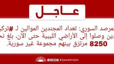 عاجل // المرصد السوري: تعداد المجندين الموالين لـ #تركيا الذين وصلوا إلى الأراضي الليبية حتى الآن، بلغ نحو 8250 مرتزق…