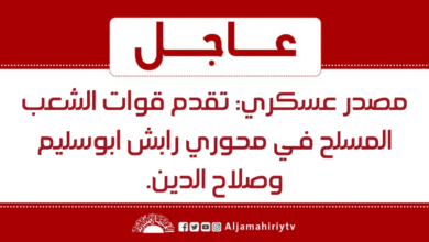 عاجل // مصدر عسكري: تقدم قوات الشعب المسلح في محوري رابش ابوسليم وصلاح الدين #قناة_الجماهيرية_العظمى_قناة_كل_الجماهير