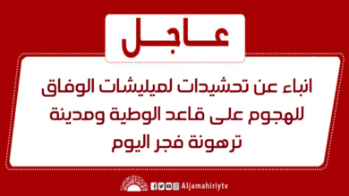 عاجل | أنباء عن تحشيدات لميليشات الوفاق للهجوم على قاعد الوطية ومدينة ترهونة فجر اليوم #قناة_الجماهيرية_العظمى_قناة_كل_الجماهير