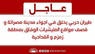 طيران حربي يحلق في اجواء مدينة مصراتة ، و يقصف مواقع لمليشيات الوفاق بمنطقة زمزم و القداحية