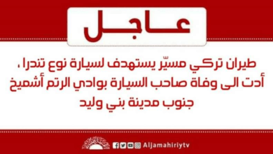 عاجل // طيران تركي مسير يستهدف سيارة نوع تندرا ، أدت إلى وفاة صاحب السيارة بوادي الرتم أشميخ جنوب مدينة بني وليد #قناة_الجماهيرية_العظمى_قناة_كل_الجماهير