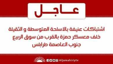 عاجل // اشتباكات عنيفة بالاسلحة المتوسطة و الثقيلة خلف معسكر حمزة بالقرب من سوق الربيع جنوب العاصمة طرابلس #قناة_الجماهيرية_العظمى_قناة_كل_الجماهير