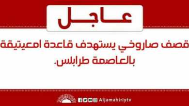 قصف صاروخي يستهدف قاعدة معيتيقة بالعاصمة #طرابلس.