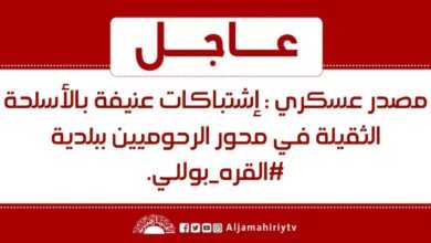 مصدر عسكري : إشتباكات عنيفة بالأسلحة الثقيلة في محور الرحوميين ببلدية #القره_بوللي.