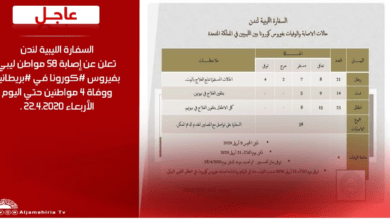 عاجل // السفارة الليبية لندن تعلن عن إصابة 58 مواطن ليبي بفيروس #كورونا في #بريطانيا ووفاة 4 مواطنين حتي اليوم…