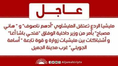 مليشيا الردع تعتقل المليشاوي “أدهم ناصوف” و ” هاني مصباح” بأمر من وزير داخلية الوفاق “فتحي باشا أغا” و أشتباكات…