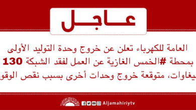 عاجل // العامة للكهرباء تعلن عن خروج وحدة التوليد الأولى بمحطة #الخمس الغازية عن العمل لفقد الشبكة 130 ميغاوات، متوقعة…