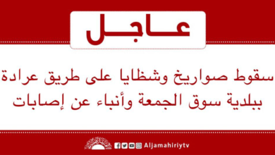 عاجل // سقوط صواريخ وشظايا على طريق عرادة ببلدية سوق الجمعة وأنباء عن إصابات #قناة_الجماهيرية_العظمى_قناة_كل_الجماهير