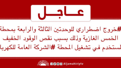 عاجل // #خروج اضطراري للوحدتين الثالثة والرابعة بمحطة الخمس الغازية وذلك بسبب نقص الوقود الخفيف المستخدم في تشغيل المحطة #الشركة العامة للكهرباء #قناة_الجماهيرية_العظمى_قناة_كل_الجماهير
