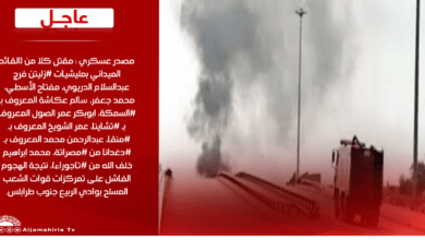 مصدر عسكري : مقتل كلا من (القائد الميداني بمليشيات #زليتن فرج عبدالسلام الدريوي، مفتاح الأسطي، محمد جعفر، سالم عكاشة المعروف بـ #السمكة، ابوبكر عمر الصول المعروف بـ #تشاينا، عمر الشويخ المعروف بـ #منقا، عبدالرحمن محمد المعروف بـ #دغدانا من #مصراتة، محمد ابراهيم خلف الله من #تاجوراء)، نتيجة الهجوم الفاشل على تمركزات قوات الشعب المسلح بوادي الربيع جنوب طرابلس.#قناة_الجماهيرية_العظمي_قناة_كل_الجماهير