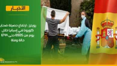 عاجل | رويترز: ارتفاع حصيلة ضحايا كورونا في إسبانيا خلال يوم من 10935 حتى 11744 حالة وفاة . #قناة_الجماهيرية_العظمي_قناة_كل_الجماهير