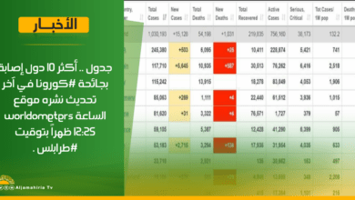 جدول.. أكثر 10 دول إصابة بجائحة #كورونا في آخر تحديث نشره موقع worldometers الساعة 12:25 ظهراً بتوقيت #طرابلس، ويظهر أن…