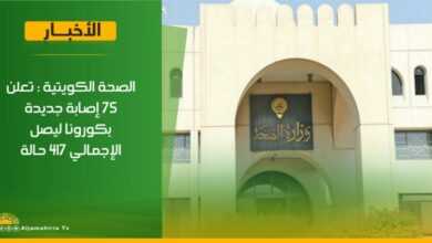 عاجل // الصحة الكويتية : تعلن 75 إصابة جديدة بكورونا ليصل الإجمالي 417 حالة .#قناة_الجماهيرية_العظمي_قناة_كل_الجماهير