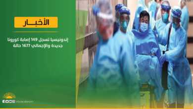 ارتفاع حالات الإصابة بفيروس كورونا بإندونيسيا قال مسؤول بوزارة الصحة إن إندونيسيا سجلت 149 حالة إصابة جديدة بفيروس كورونا المستجد،…