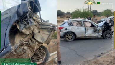 حادث تصادم مروع بين 3 سيارات على طريق ترهونة يسفر عن إصابات بليغة