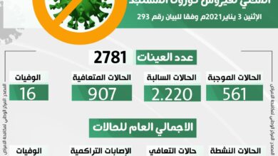 التحديث اليومي للوضع الوبائي المحلي لفيروس كورونا ليوم الأحد 03 يناير 2021