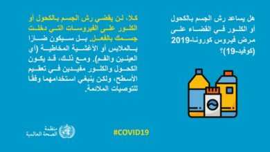 تصحيح المفاهيم المغلوطة هل يساعد رش الجسم بالكحول أو الكلور في القضاء على فيروس كورونا الجديد؟ كلا، رش الجسم بالكحول…