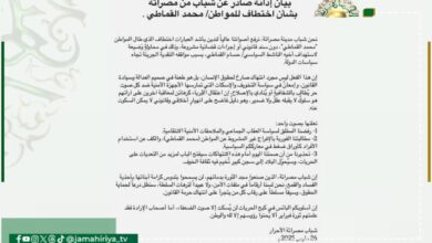 شباب مصراتة يدينون اختطاف محمد القماطي دان شباب مدينة مصراتة، بأشد العبارات اختطاف المواطن محمد القماطي، دون سند قانوني أو…